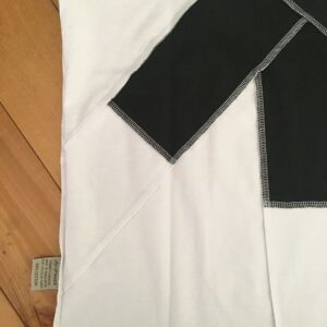 正面の矢印はアップサイクルの象徴。プリントではなく丁寧にパッチワークで表現しています。